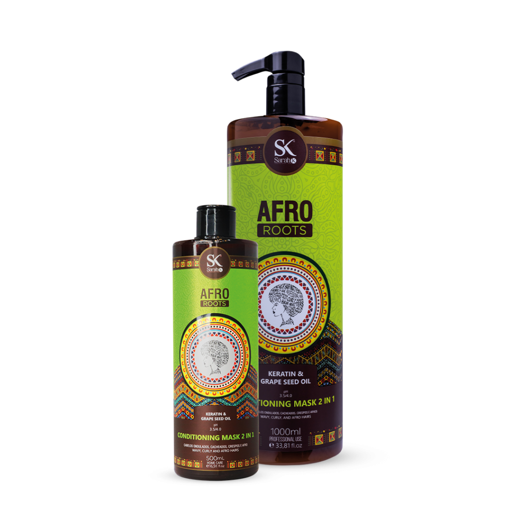 The 2-in-1 Afro Roots Conditioning Mask is designed to provide deep nourishment and eliminate dryness and roughness in the hair. Its formulation, featuring Grape Seed Oil and Keratin, gives the hair strength, reduced frizz, shine, a silky touch, and long-lasting smoothness.