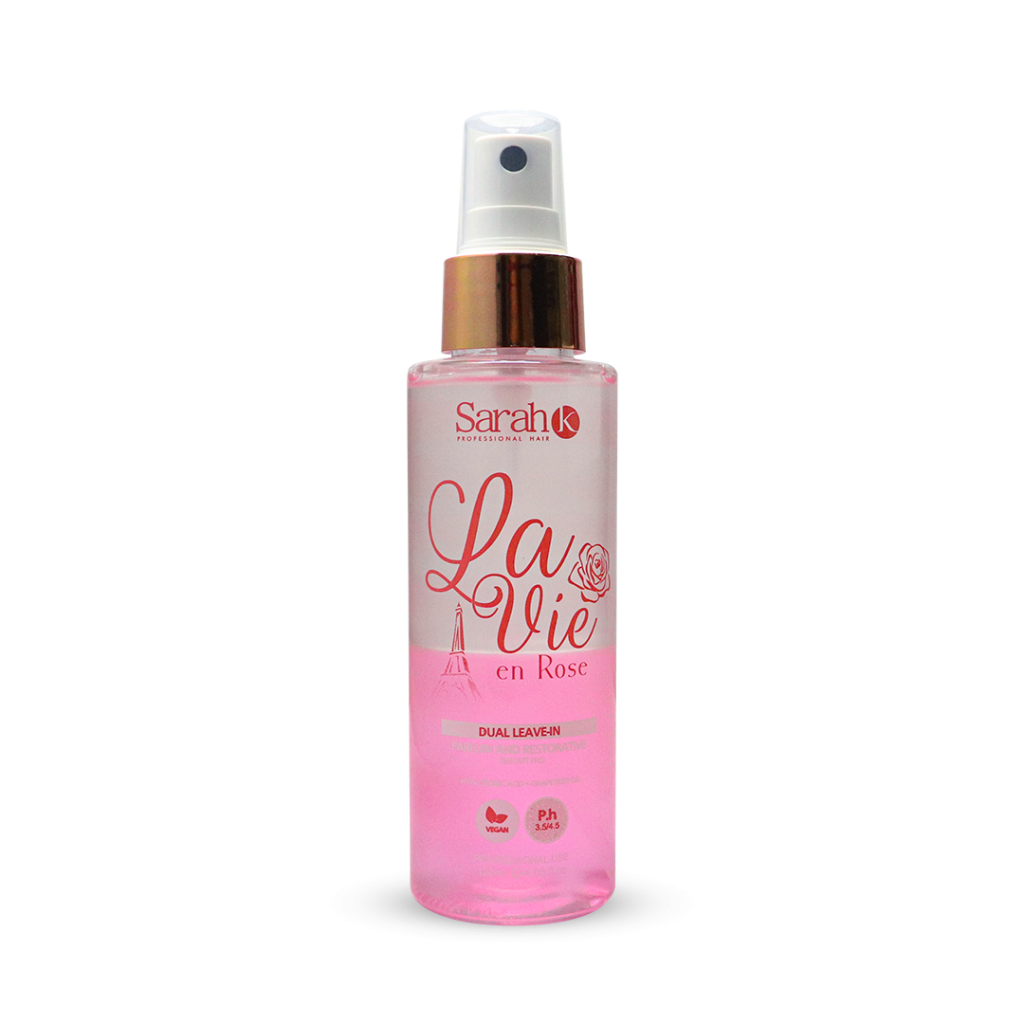 The La Vie en Rose Biphasic Leave-in provides complete treatment for the hair, hydrating, nourishing, and protecting the strands simultaneously. Simply shake the bottle well to mix the two phases and apply it to damp or dry hair, concentrating on the ends and avoiding the roots.